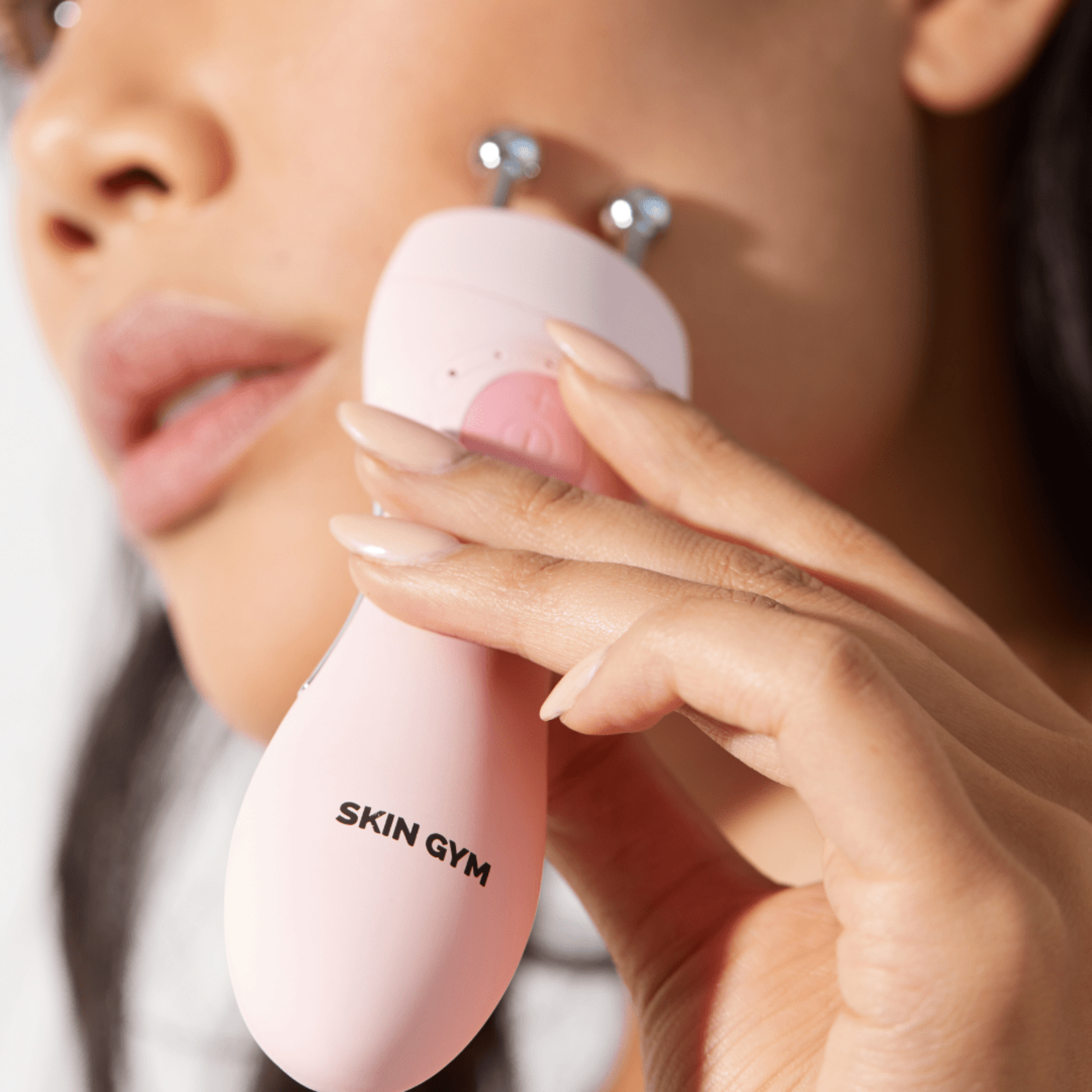 The conductive gel paired with the wand is formulated to help your serums and moisturizers sit smoother and feel more cohesive with your routine.