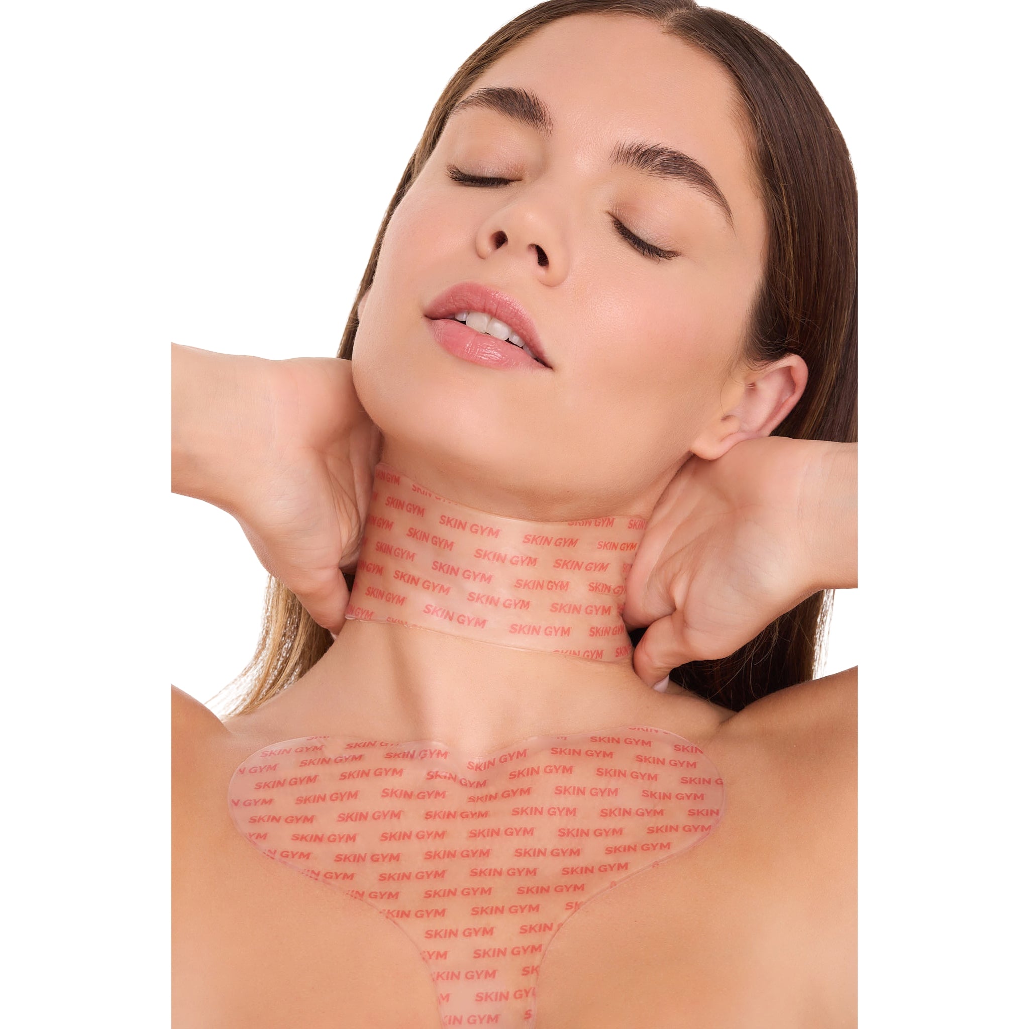 Medical-grade silicone gently compresses the skin to help soften the appearance of fine lines and wrinkles along the neck.