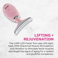 The Skin Gym LitLift LED Facial Tool is a cutting-edge, multi-functional device that combines the power of EMS (Electrical Muscle Stimulation), Heat, Red and Blue LED Light Therapy, and Vibrational Massage into one handheld device. This innovative tool works to stimulate the facial muscles and temporarily boost circulation through facial massage, all with the added benefits of targeted LED Light Therapy to provide a lifted appearance and a radiant glow. Lightweight and rechargeable, it’s the perfect companion for addressing your skincare needs on the go. Experience a temporary lift, reduce the appearance of puffiness and get a sculpted glow with LitLift!